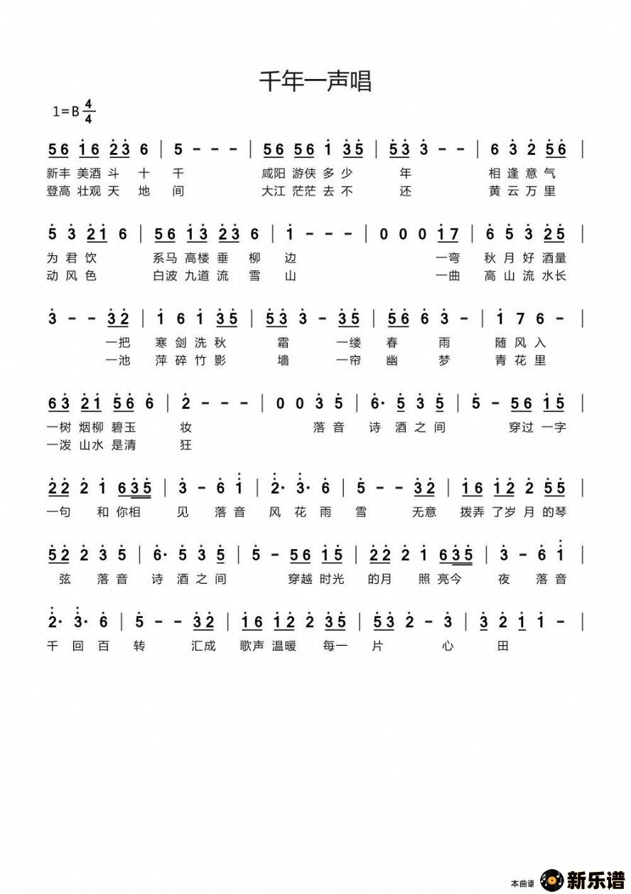 千年一声唱(《经典咏流传》第三季主题曲)最新曲谱