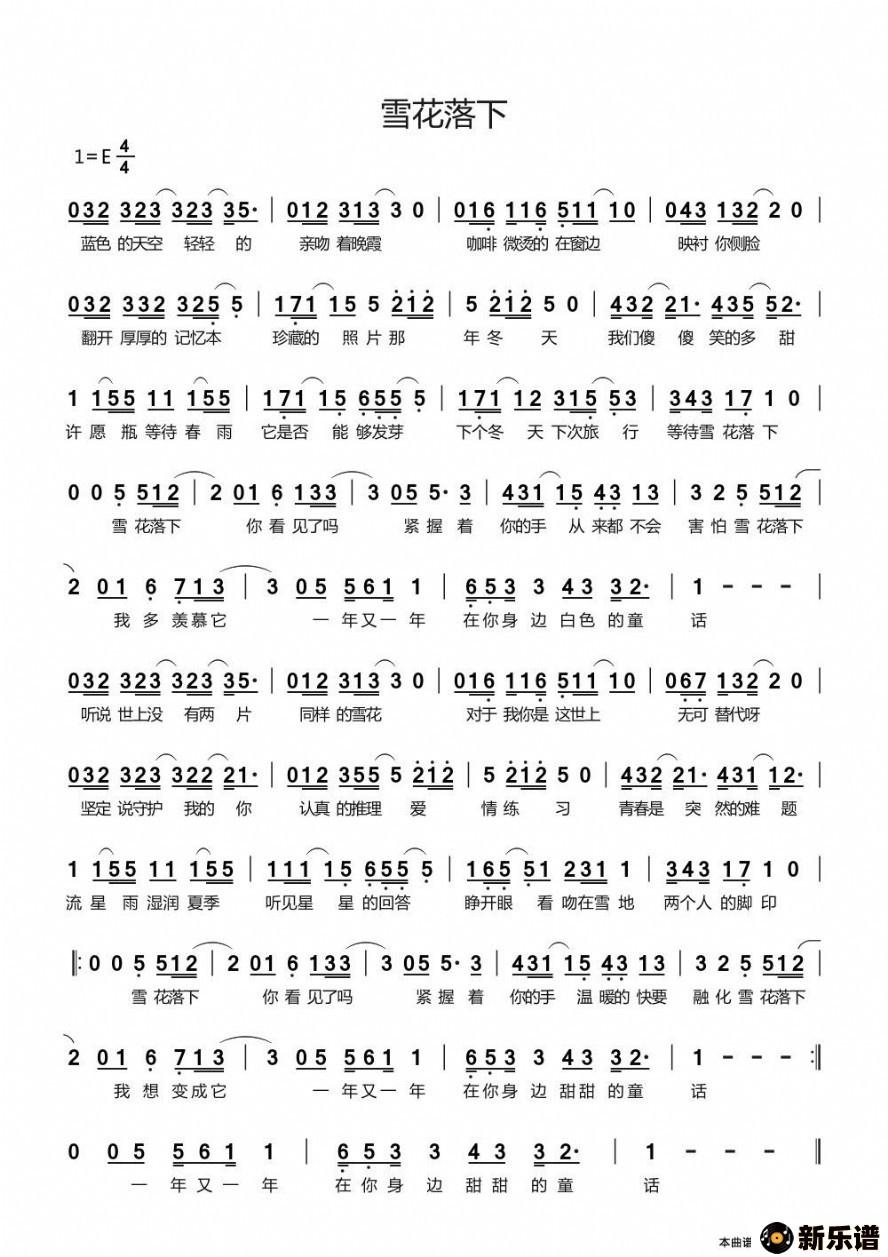 > 雪花落下(《冰糖炖雪梨》主题曲)简谱