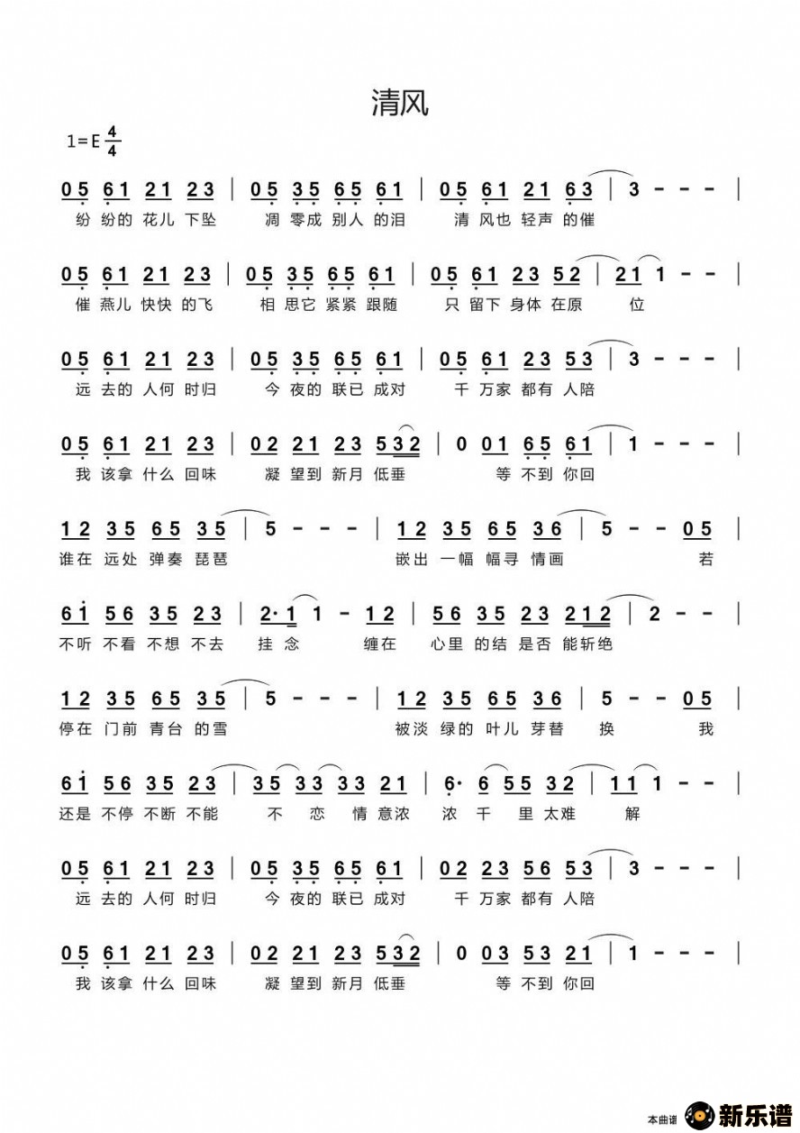 《清风》简谱 刘安琪-日日爱日日未制谱