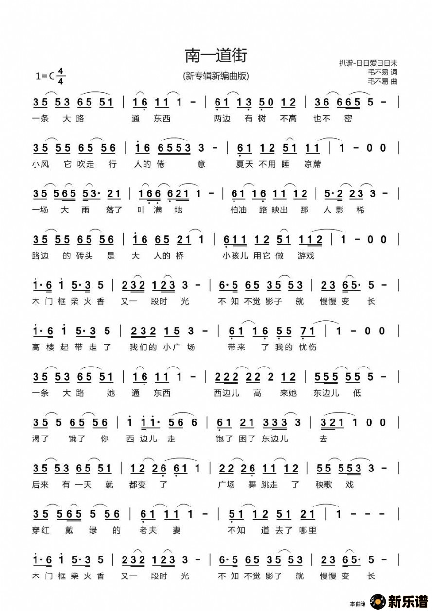 《南一道街》简谱 毛不易-日日爱日日未制谱