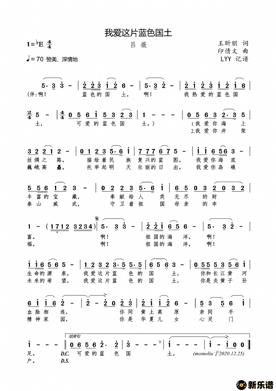 《我爱这片蓝色国土》简谱 吕薇-momoliu制谱