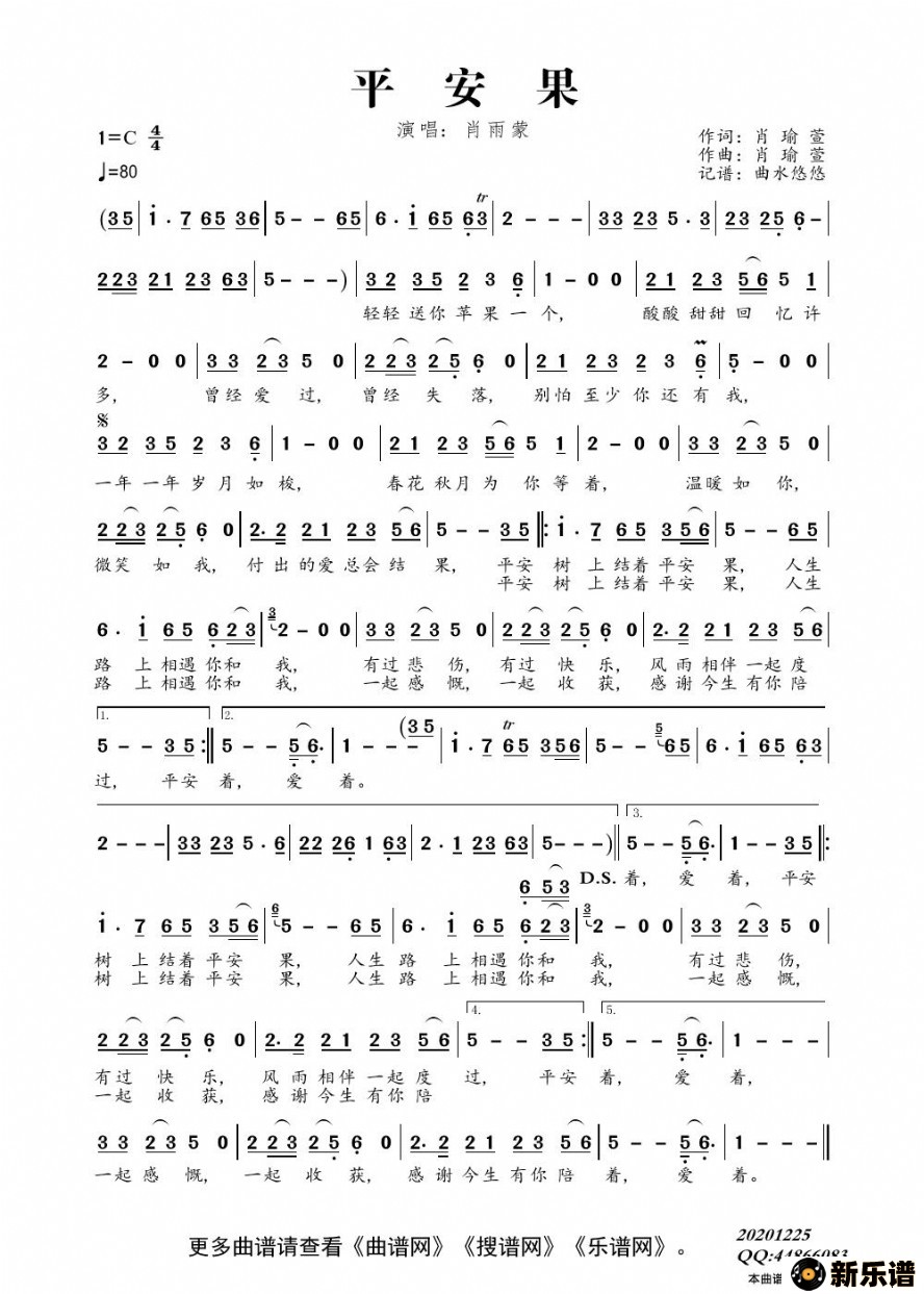 《平安果》简谱 肖雨蒙-曲水悠悠制谱