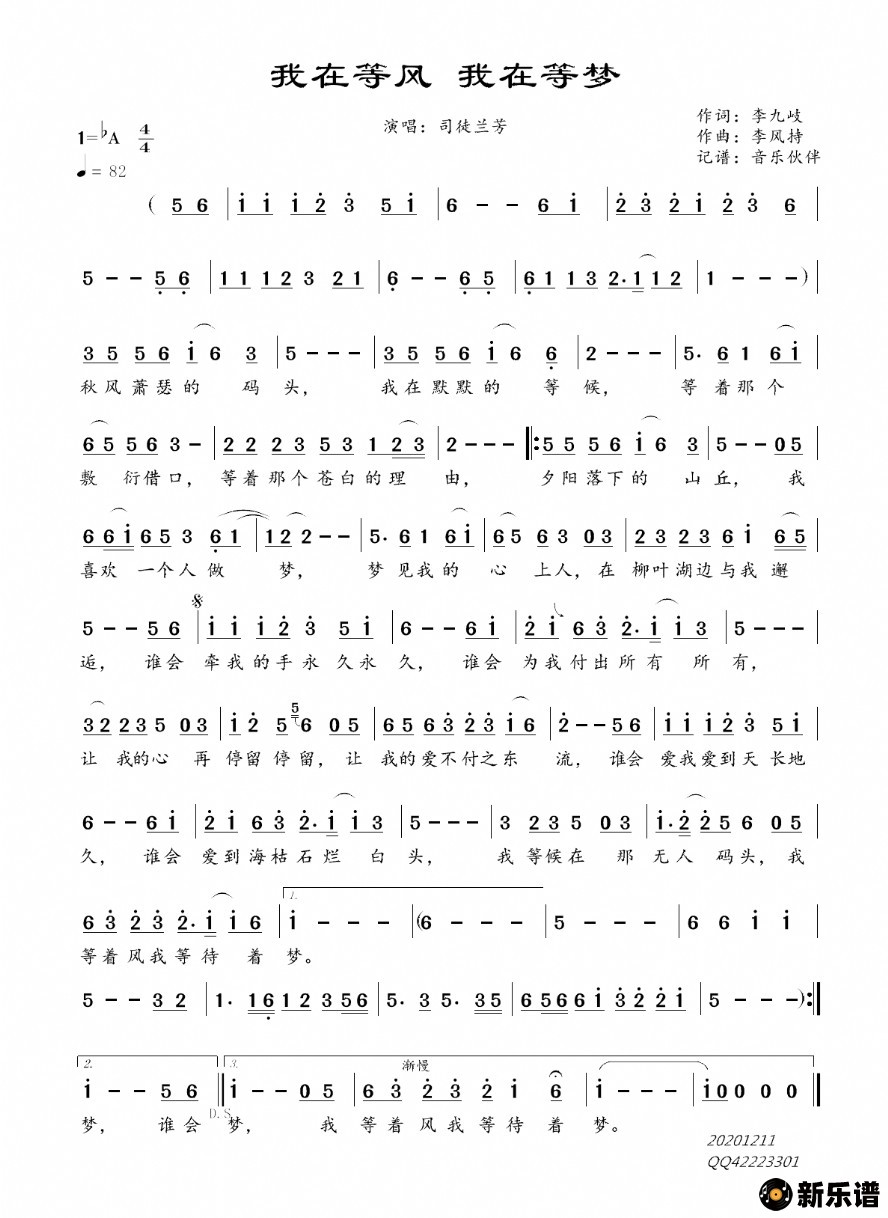《我在等风 我在等梦》简谱 司徒兰芳-音乐伙伴制谱