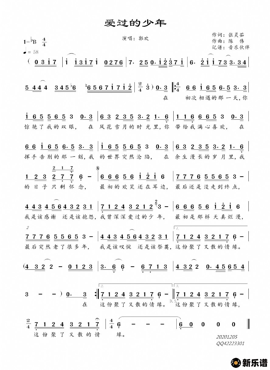 《爱过的少年》简谱 郭欢-音乐伙伴制谱