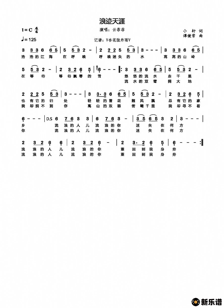 《浪迹天涯》简谱 云菲菲-杏花弦外雨制谱