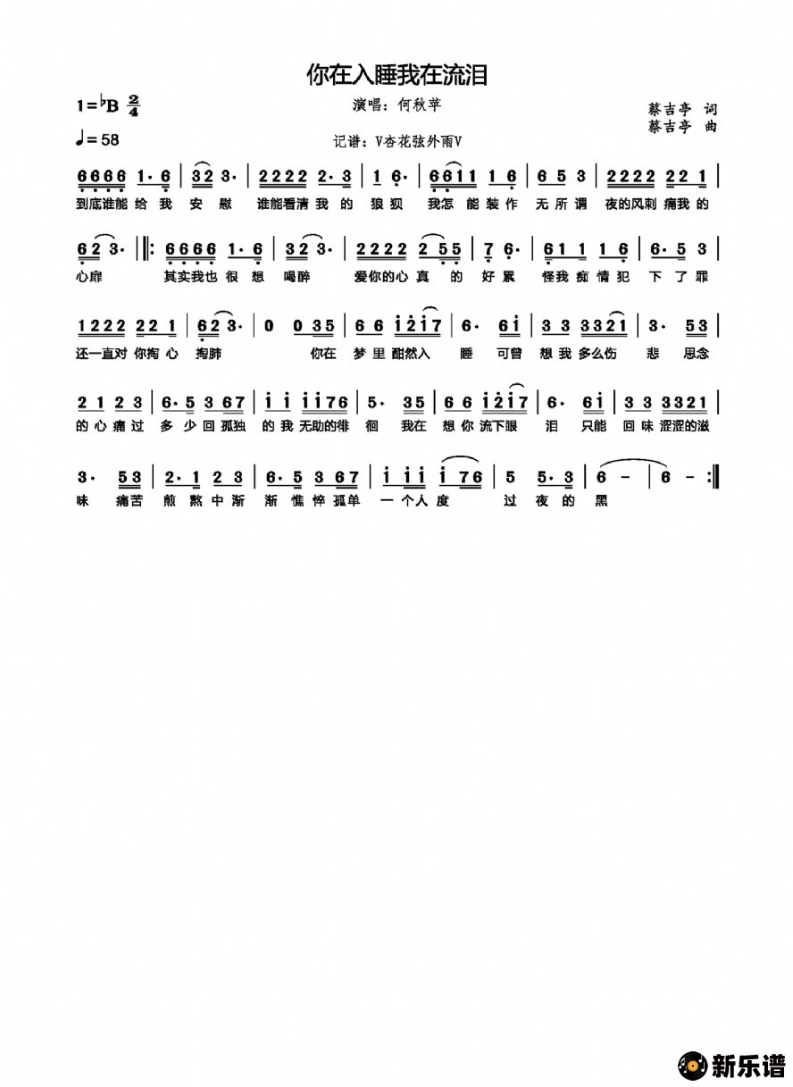 《你在入睡我在流泪》简谱 何秋苹-杏花弦外雨制谱