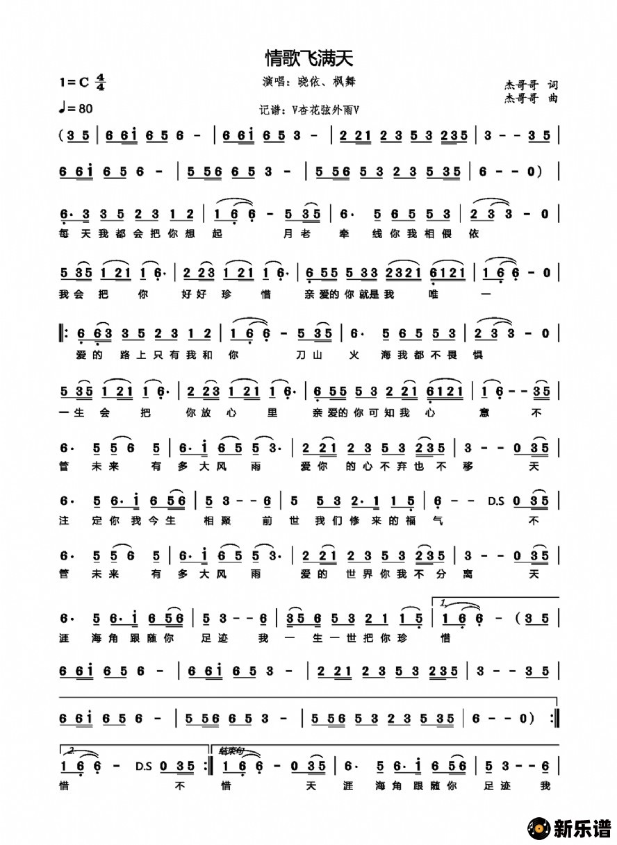 晓依演唱的情歌飞满天歌词,情歌飞满天简谱.