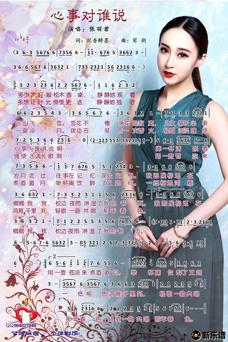 张丽君演唱的心事对谁说歌词,心事对谁说简谱.