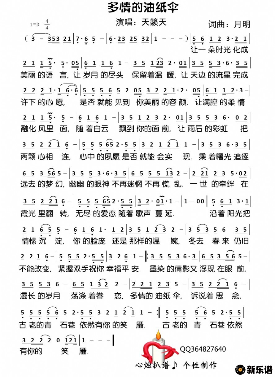 《多情的油纸伞》简谱 天籁天-心烛制谱