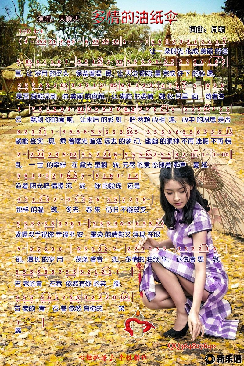 天籁天演唱的多情的油纸伞歌词,多情的油纸伞简谱.