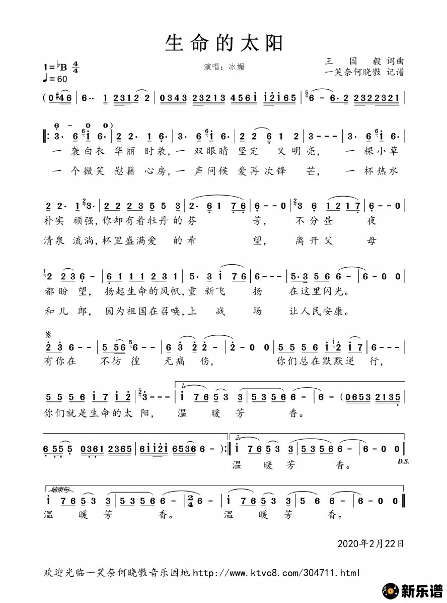 《生命的太阳》简谱 冰媚-一笑奈何晓斅制谱