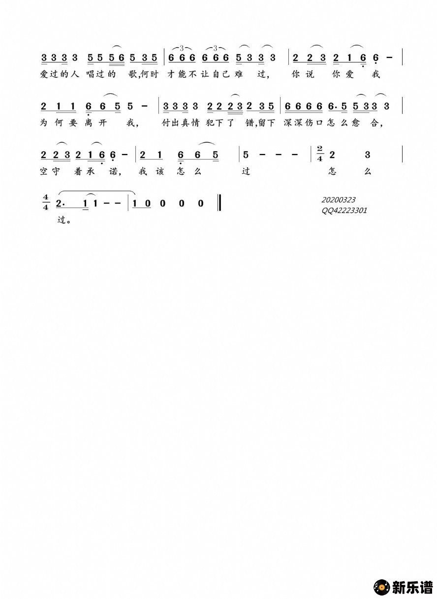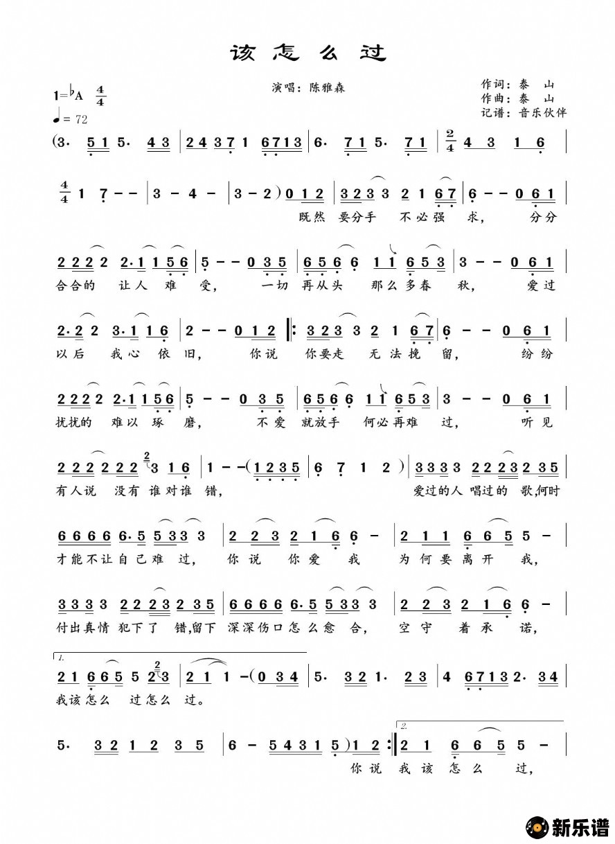 《该怎么过》简谱 陈雅森-音乐伙伴制谱
