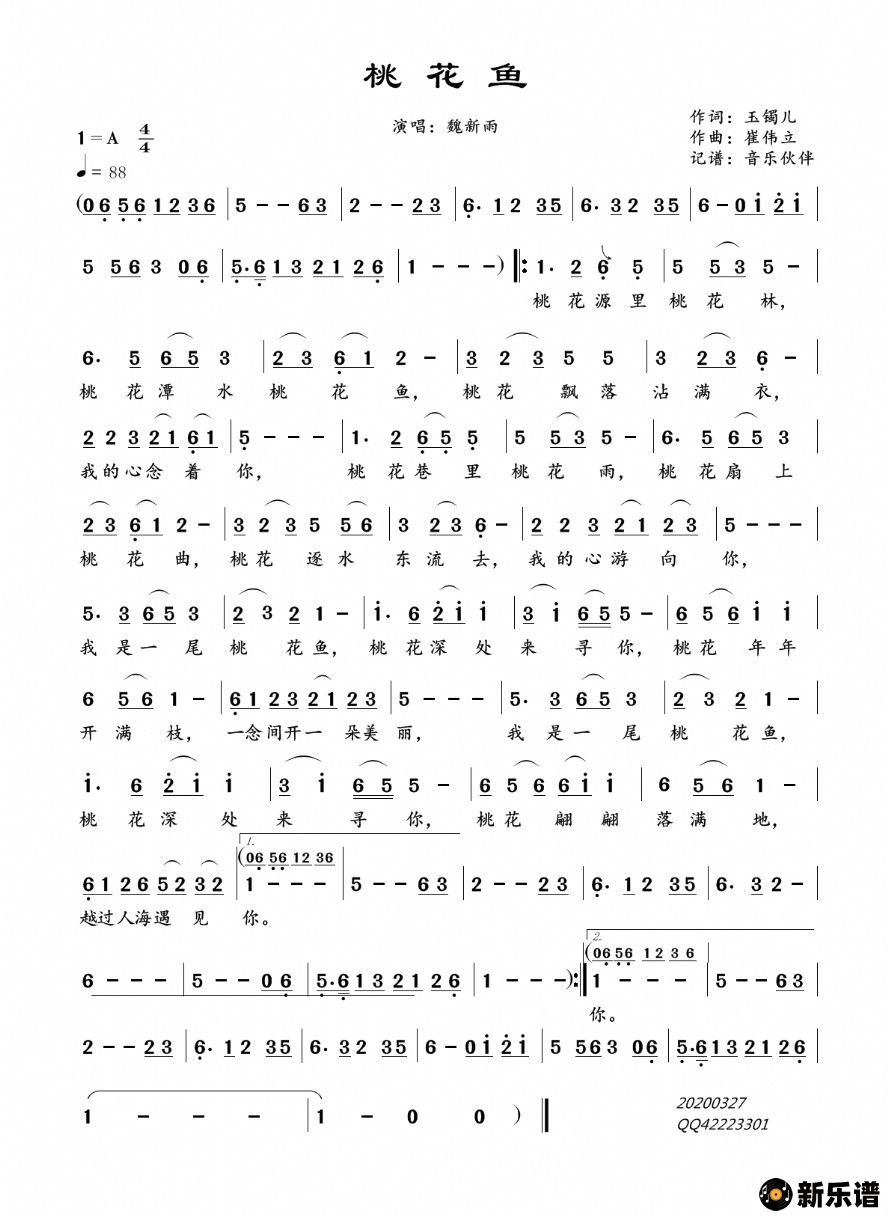 《桃花鱼》简谱 魏新雨-音乐伙伴制谱