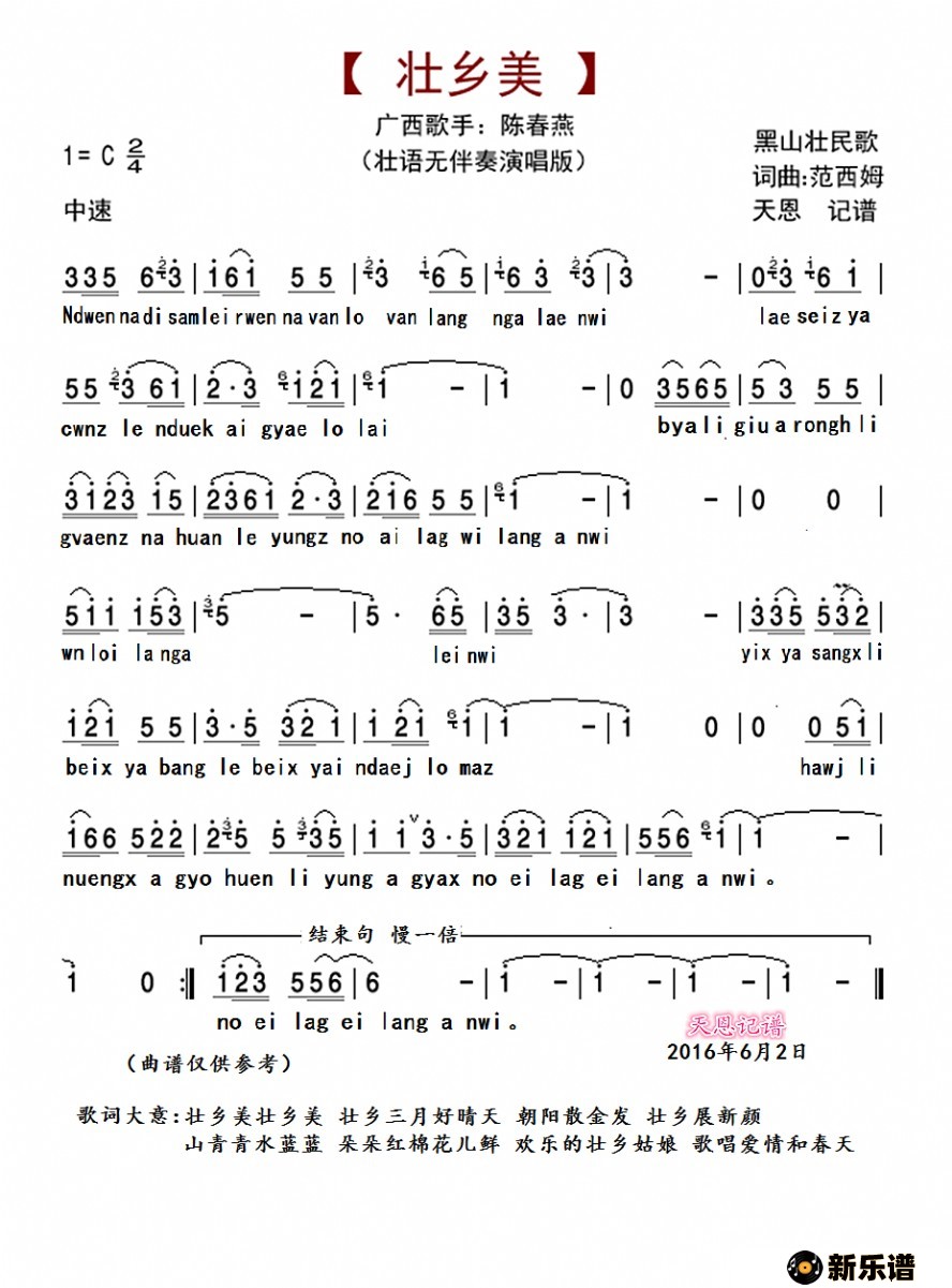 陈春燕演唱的壮乡美歌词,壮乡美简谱.
