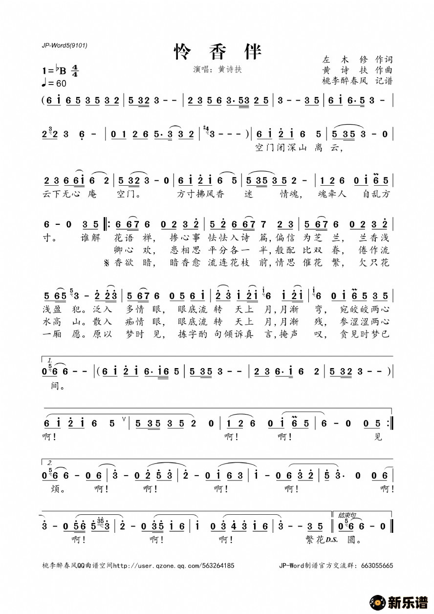 《怜香伴》简谱 黄诗扶-桃李醉春风制谱