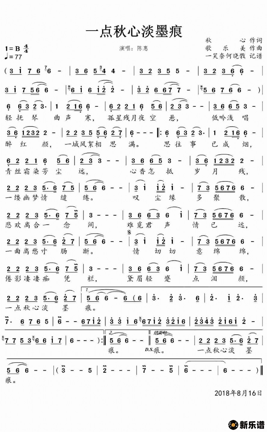《一点秋心淡墨痕》简谱 陈惠-一笑奈何晓斅制谱