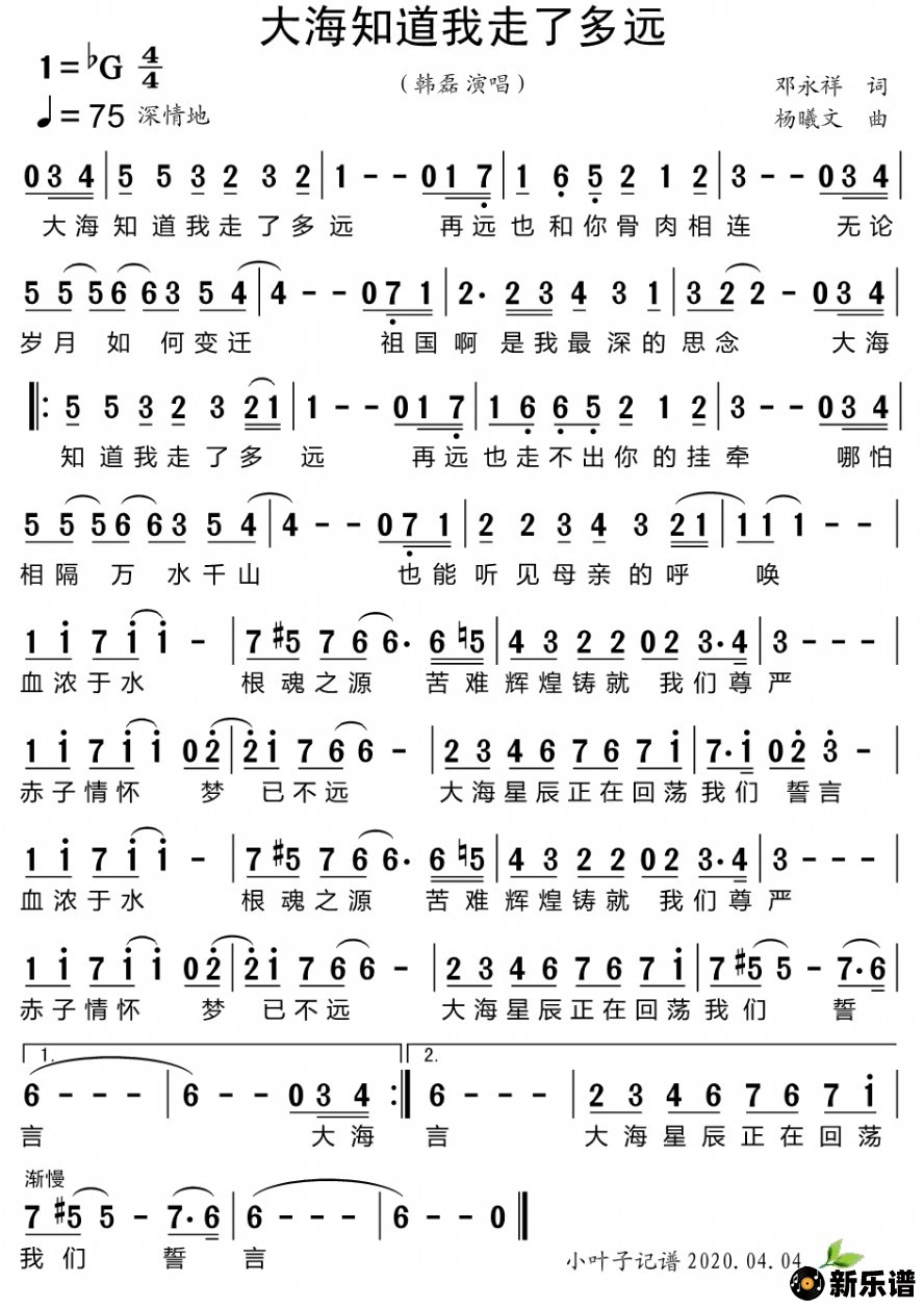 《大海知道我走了多远》简谱 韩磊-小叶子制谱