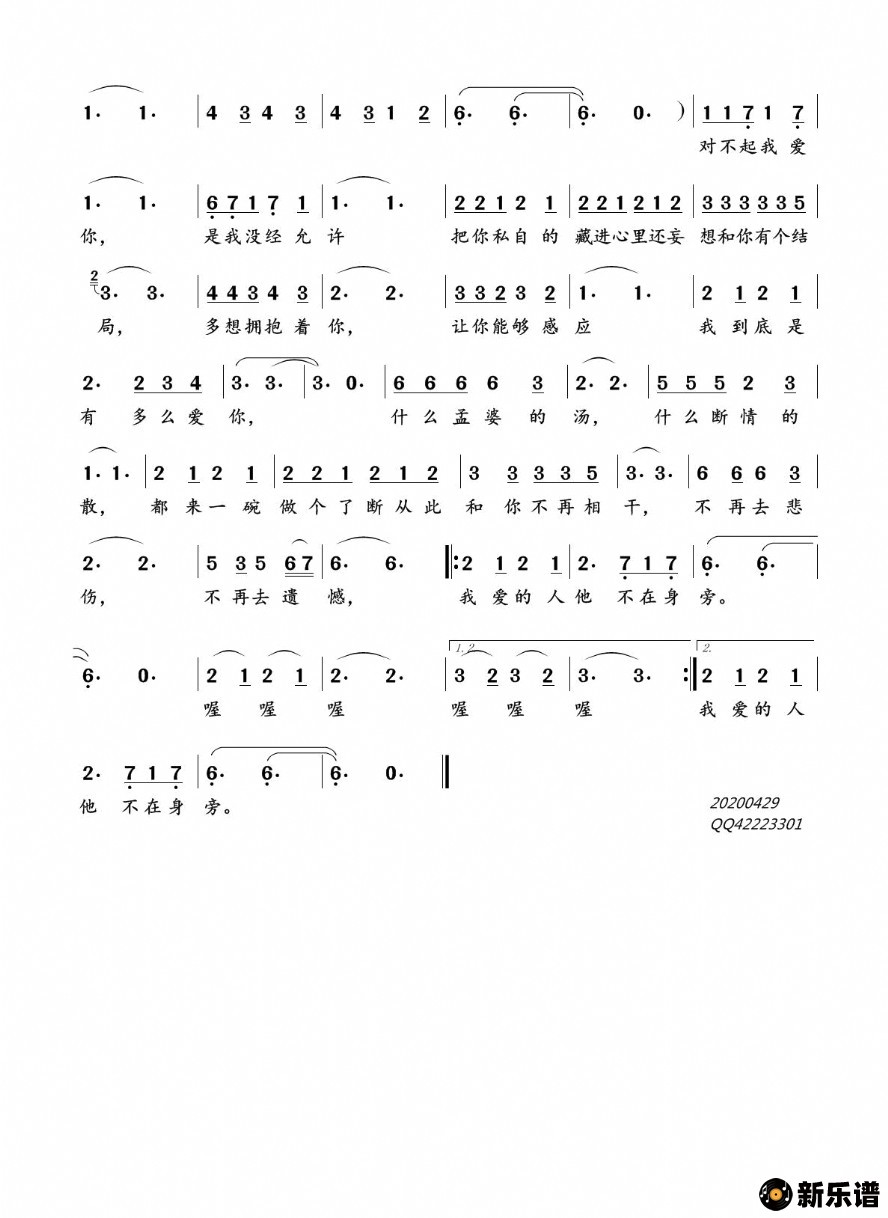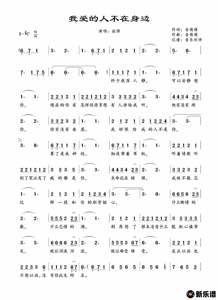 《我爱的人不在身旁》简谱 寂悸-音乐伙伴制谱