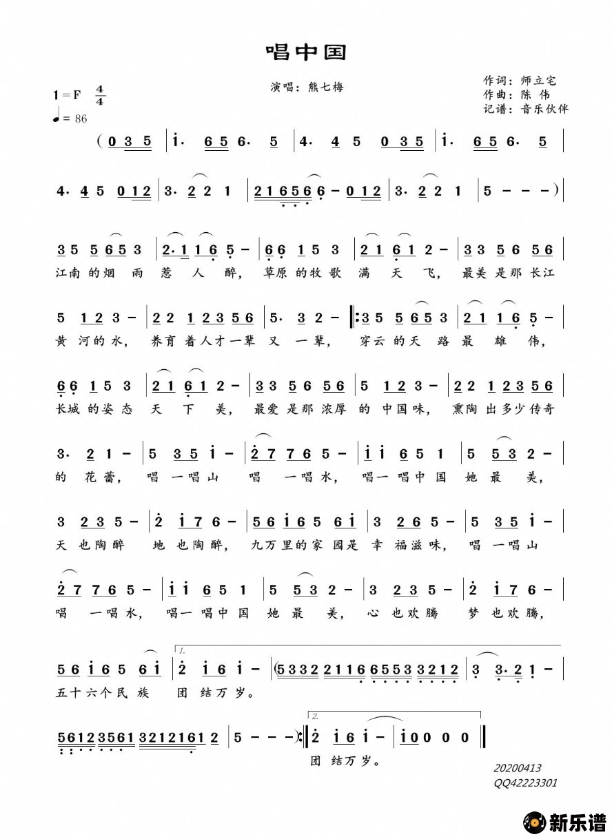 《唱中国》简谱 熊七梅-音乐伙伴制谱