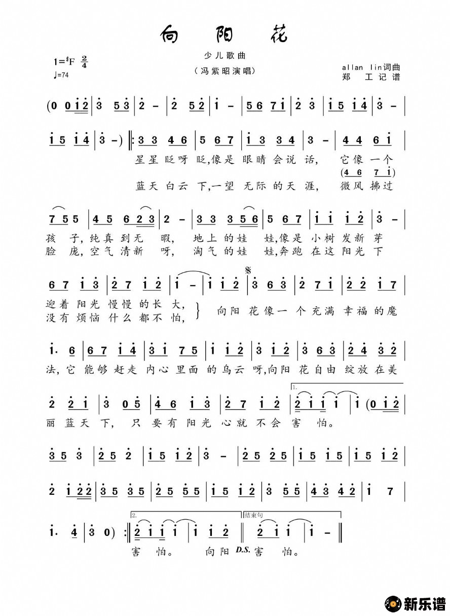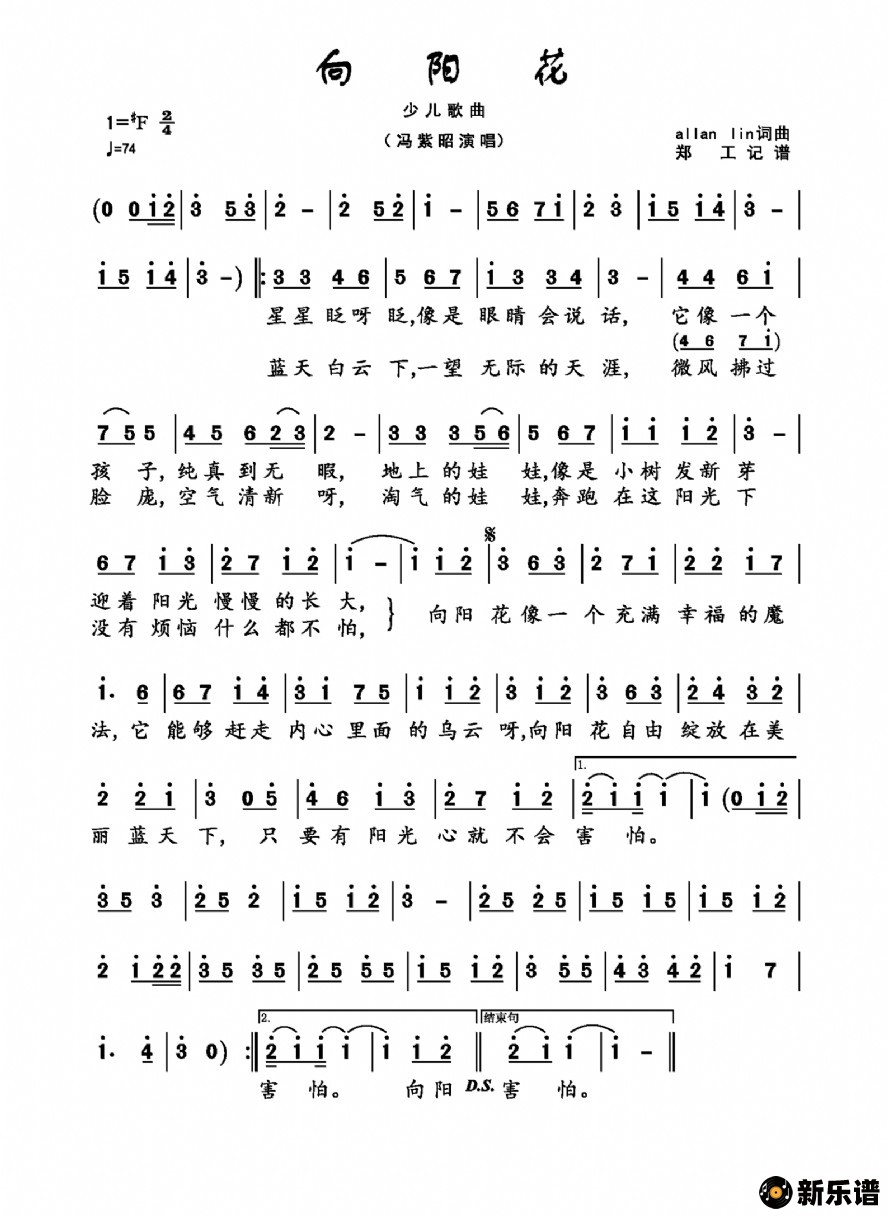冯紫昭演唱的向阳花(少儿歌曲)歌词,向阳花(少儿歌曲)简谱.