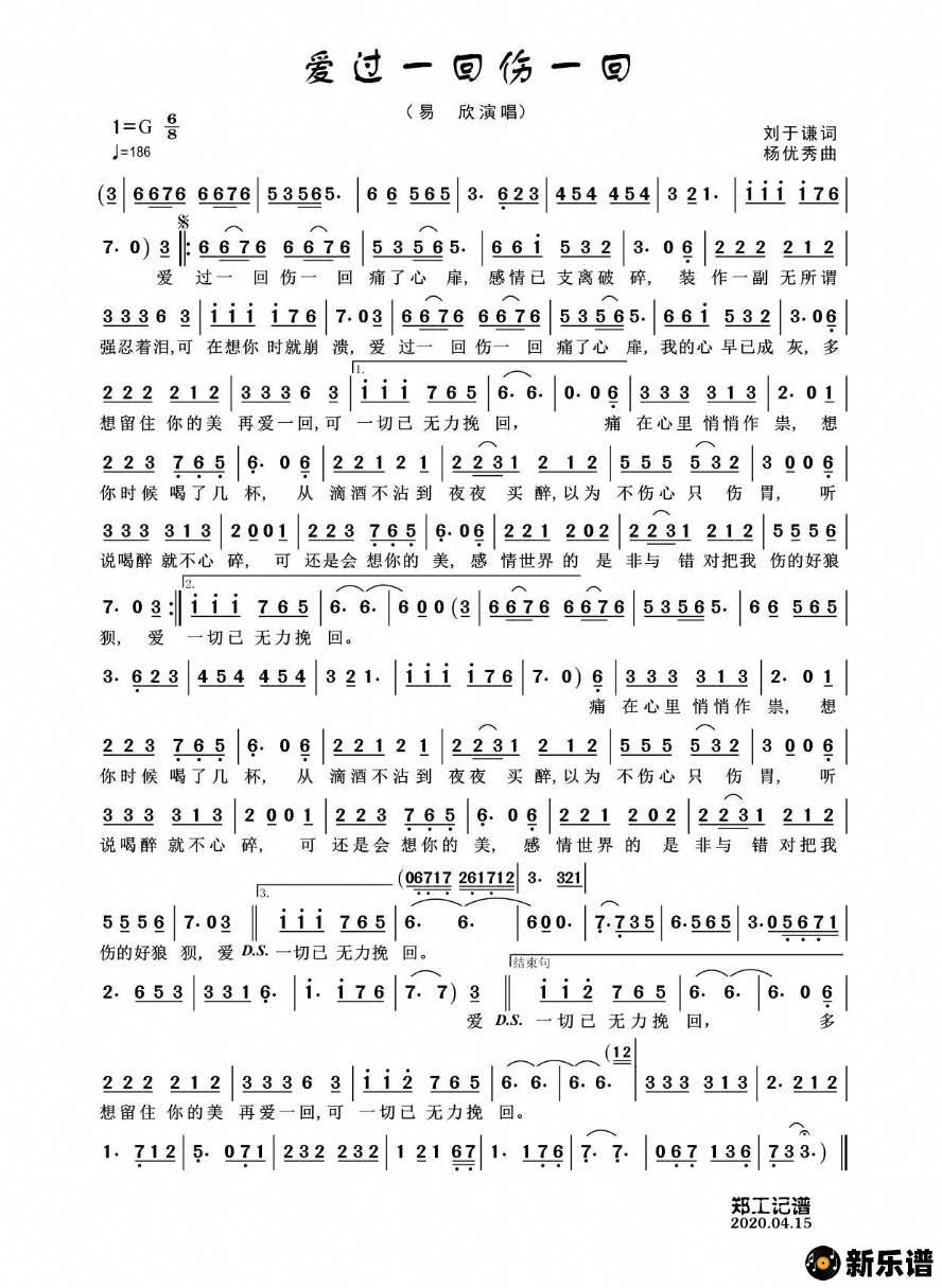 《爱过一回伤一回》简谱 易欣-郑工制谱