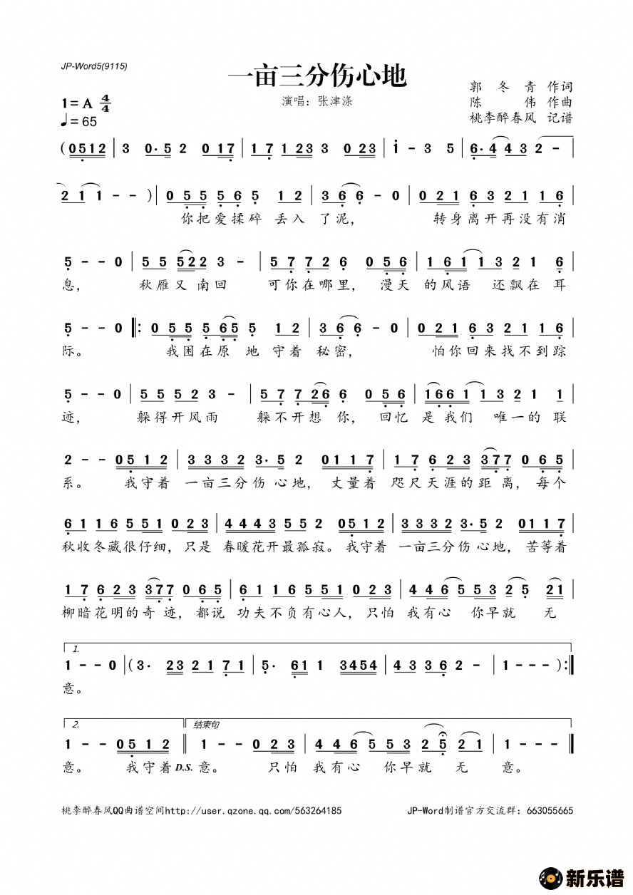 《一亩三分伤心地》简谱 张津涤-桃李醉春风制谱