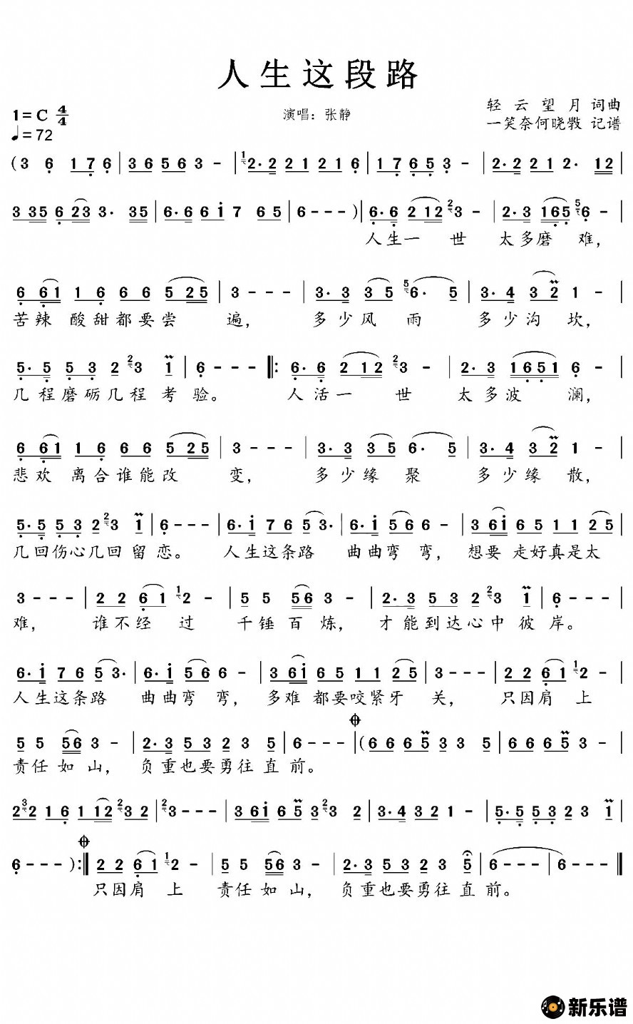 《人生这段路》简谱 张静-一笑奈何晓斅制谱