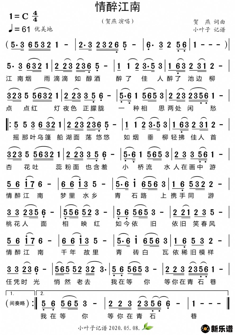 贺燕演唱的情醉江南歌词,情醉江南简谱.