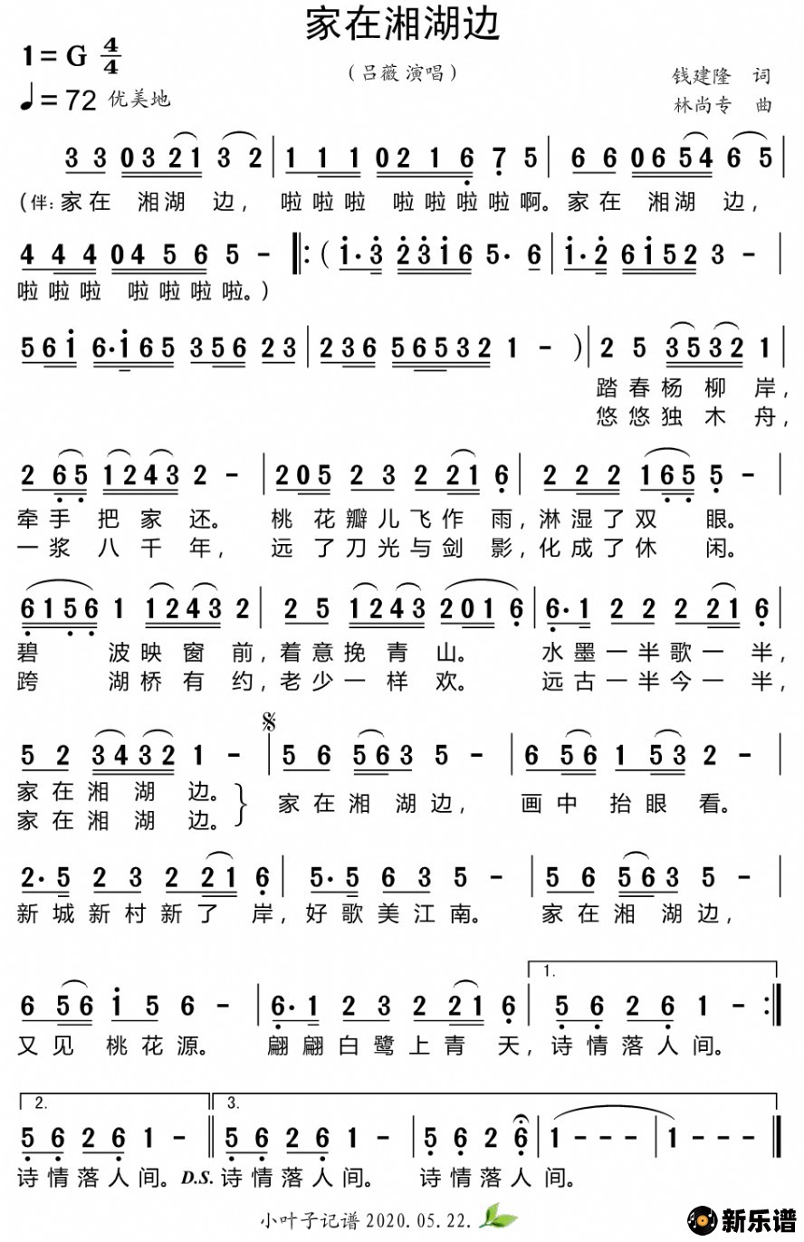 《家在湘湖边》简谱 吕薇-小叶子制谱