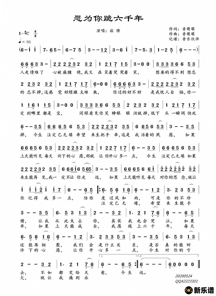 《愿为你跪六千年》简谱 寂悸-音乐伙伴制谱