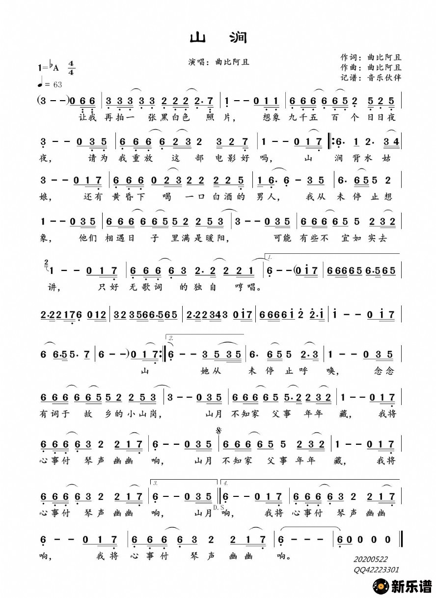 曲比阿且演唱的山涧歌词,山涧简谱.