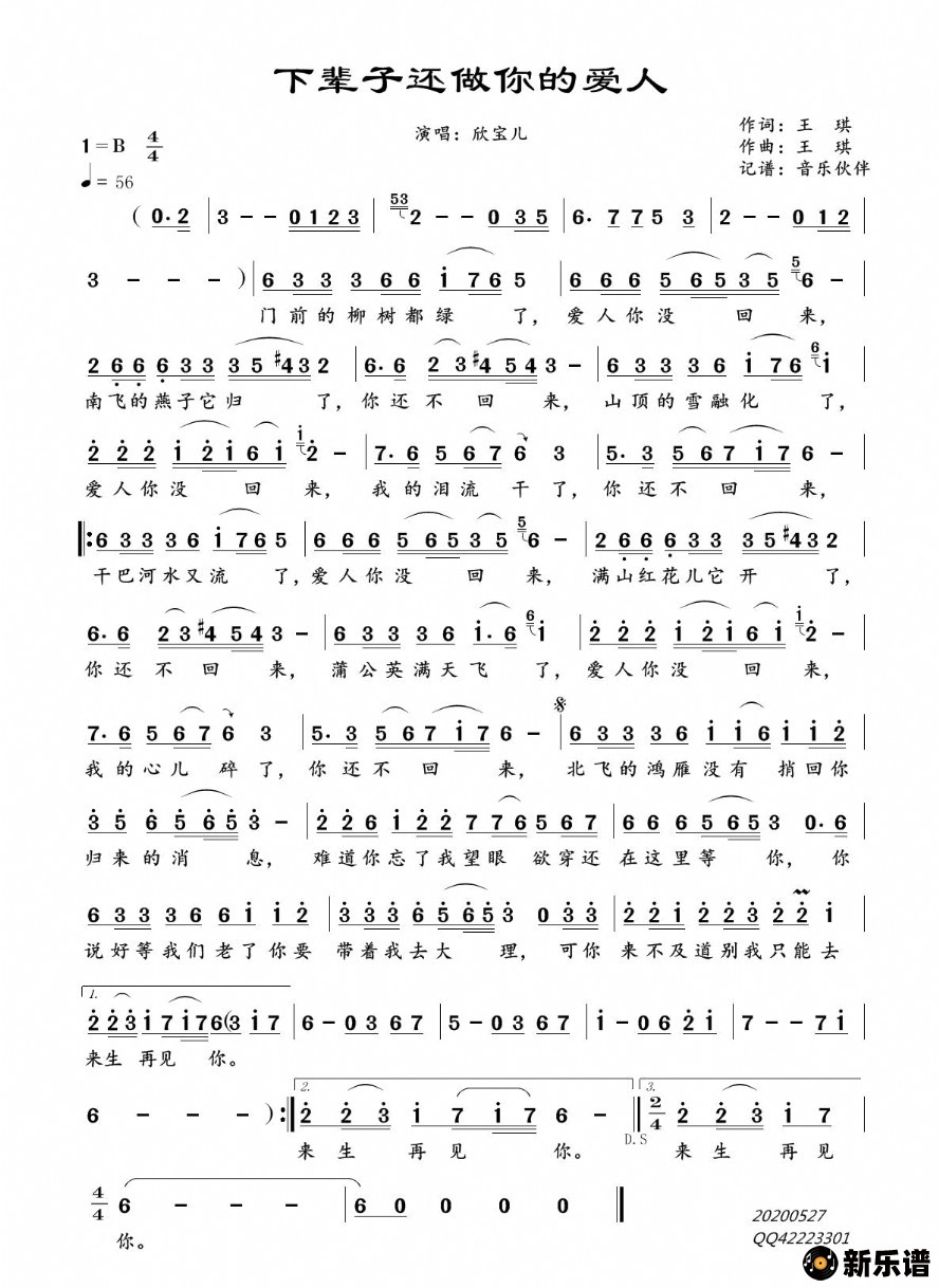 《下辈子还做你的爱人》简谱 欣宝儿-音乐伙伴制谱