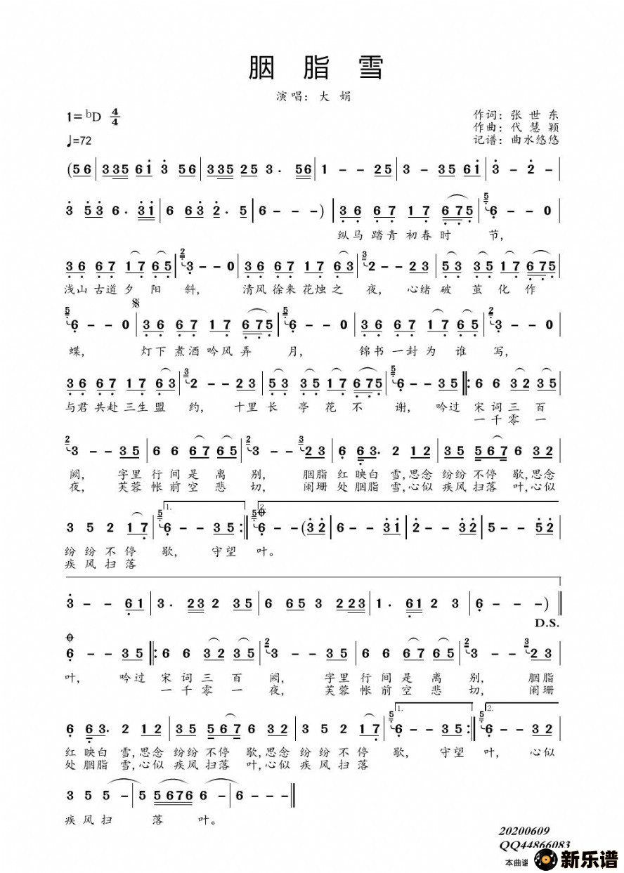 《胭脂雪》简谱 大娟-曲水悠悠制谱