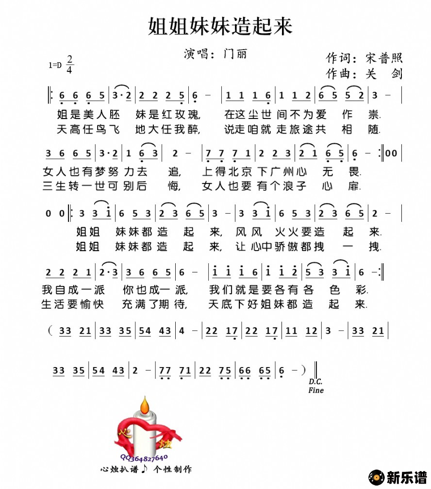 《姐姐妹妹造起来》简谱 门丽-心烛制谱
