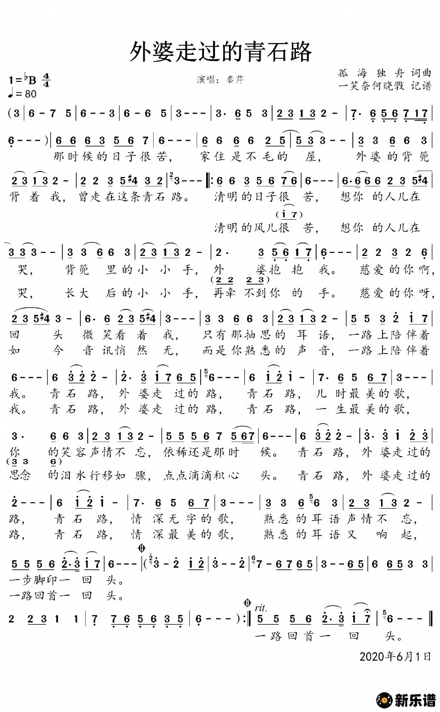 《外婆走过的青石路》简谱 秦芹-一笑奈何晓斅制谱