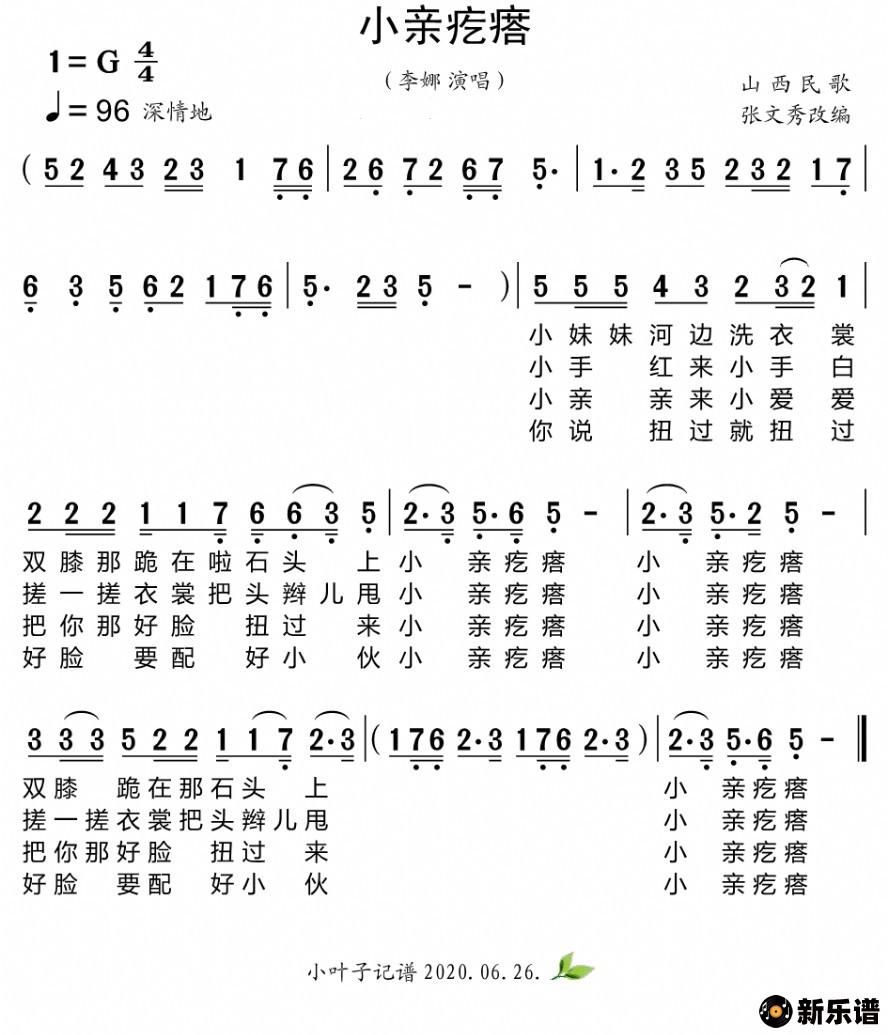 《小亲疙瘩》简谱 李娜-小叶子制谱