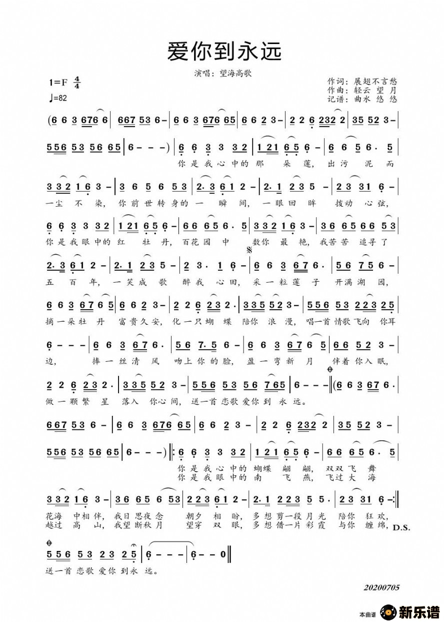 《爱你到永远》简谱 望海高歌-曲水悠悠制谱