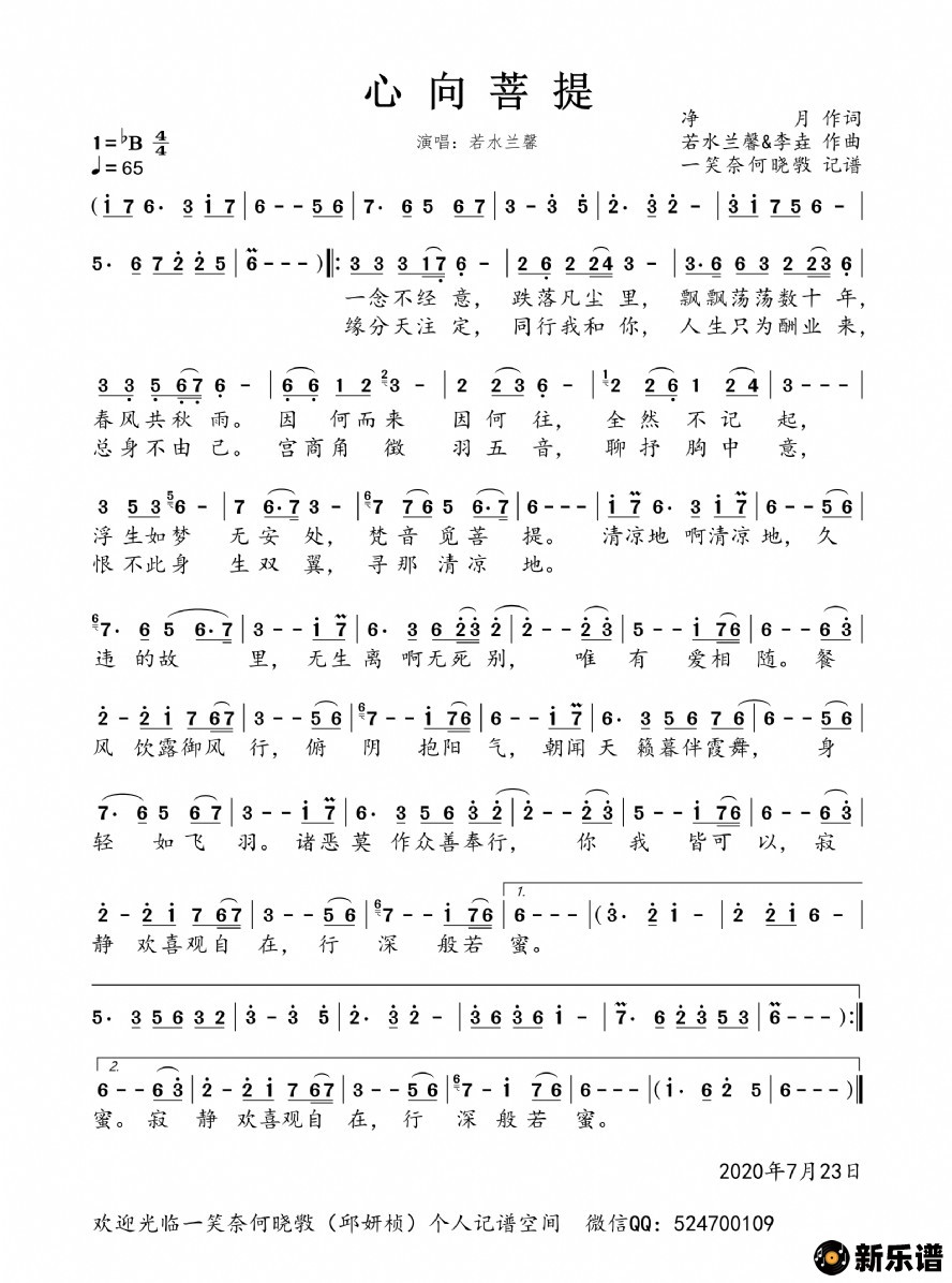 《心向菩提》简谱 若水兰馨-一笑奈何晓斅制谱