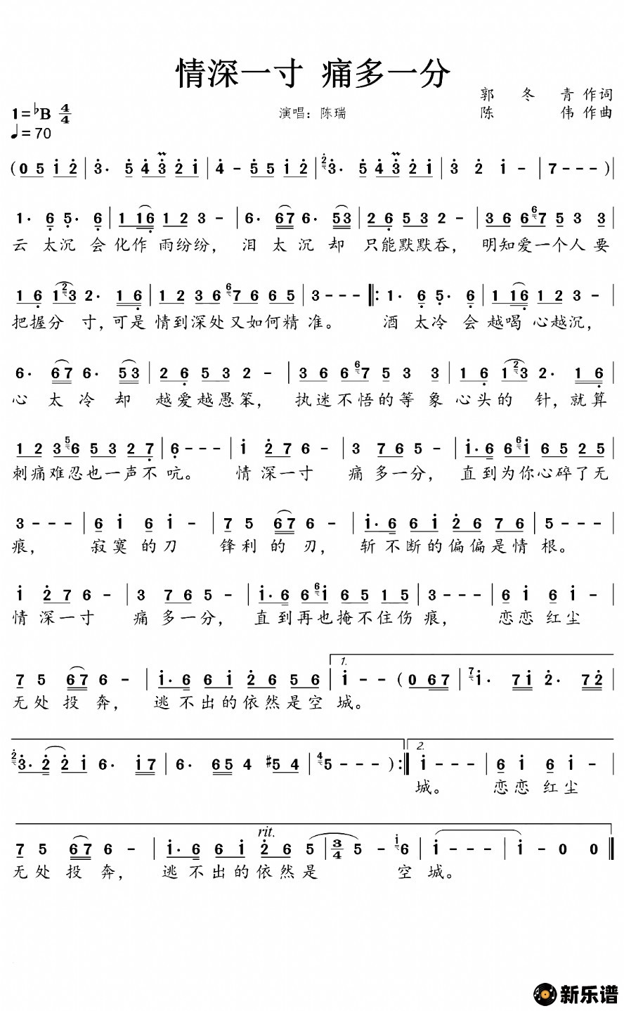 情深一寸 痛多一分/陈瑞 相关曲谱