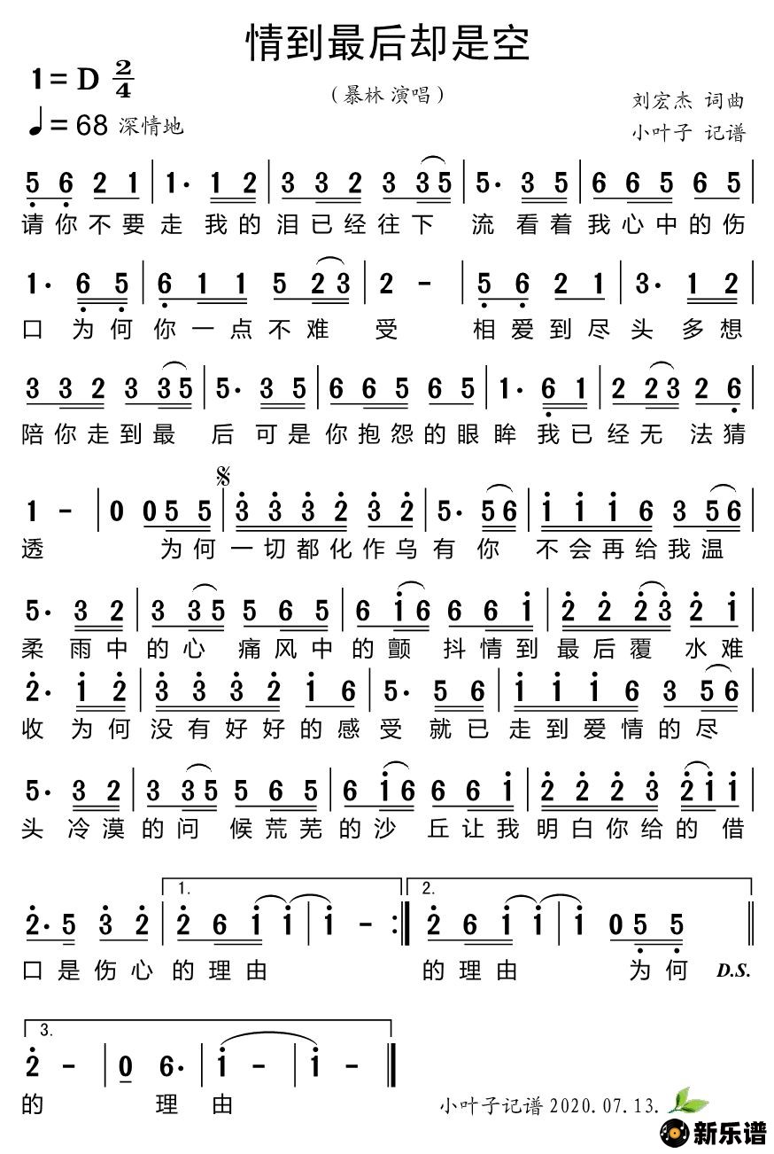 《情到最后却是空》简谱 暴林-小叶子制谱
