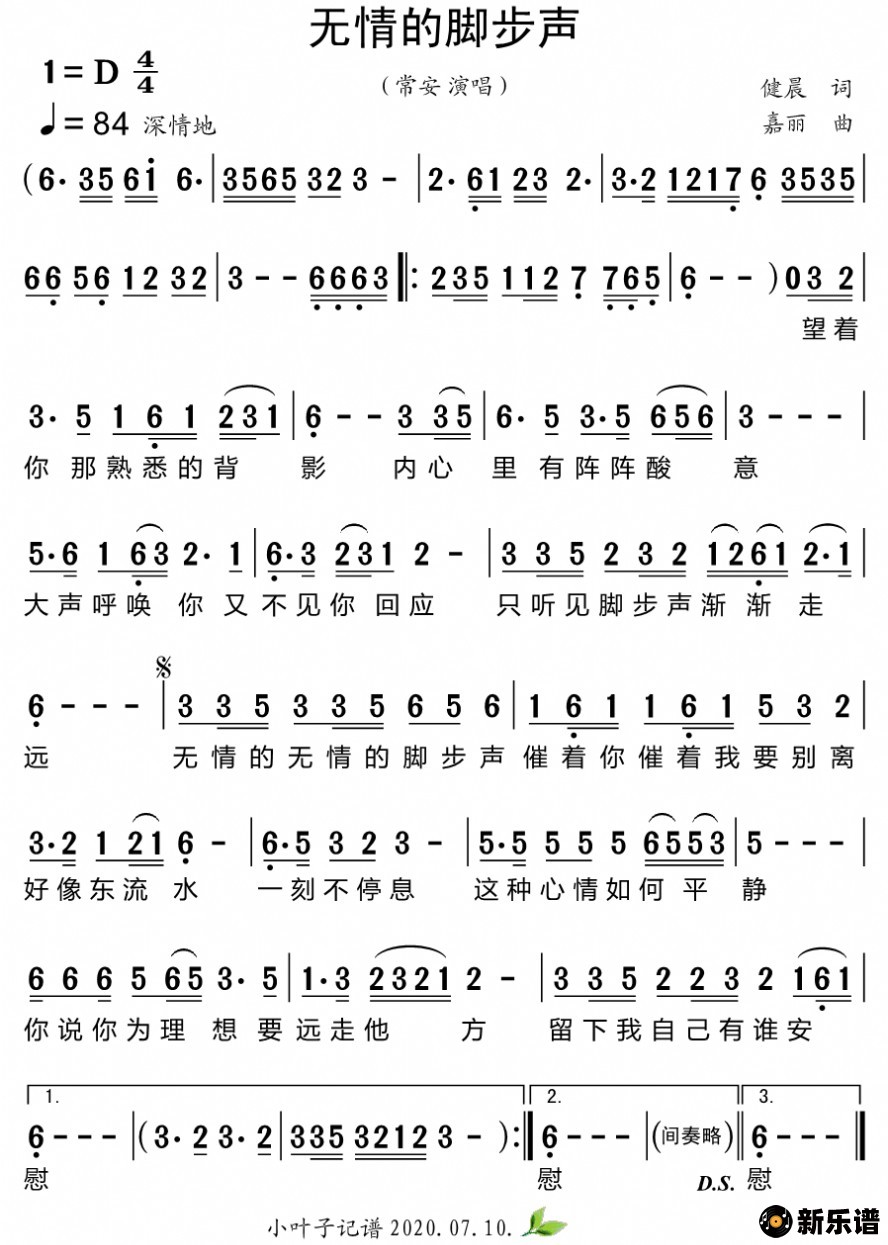 常安演唱的无情的脚步声歌词,无情的脚步声简谱.