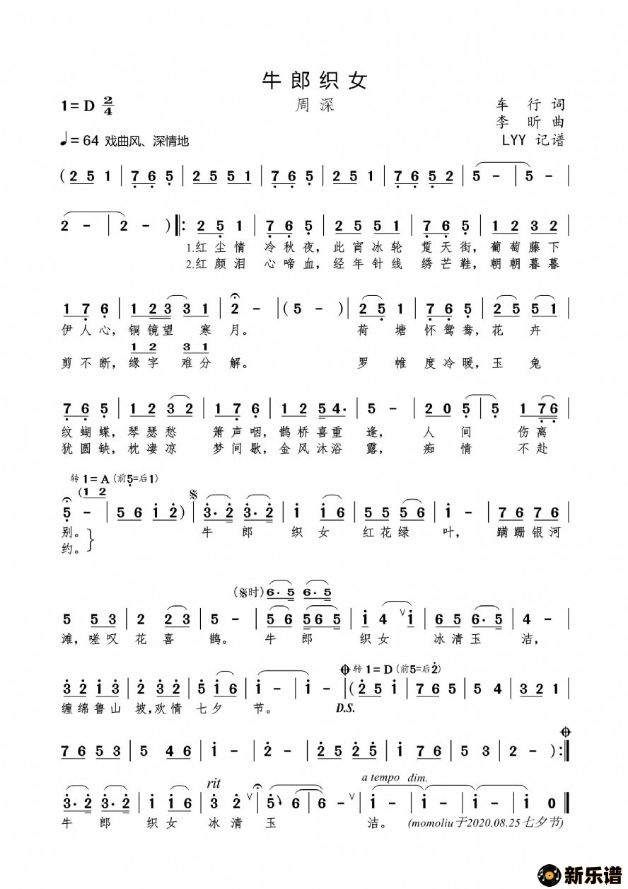 《牛郎织女》简谱 周深-momoliu制谱