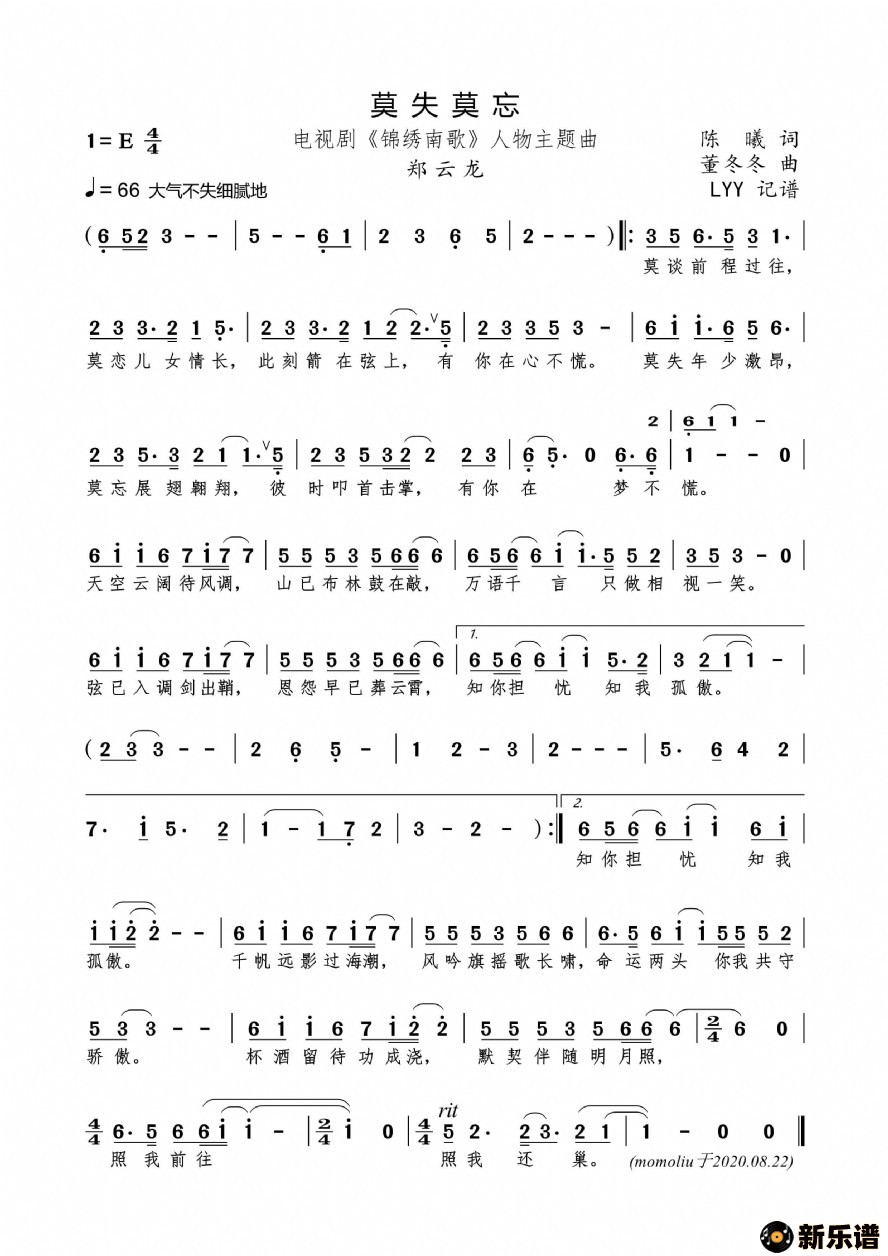 《莫失莫忘(电视剧《锦绣南歌》人物主题曲)》简谱 郑云龙-momoliu制谱