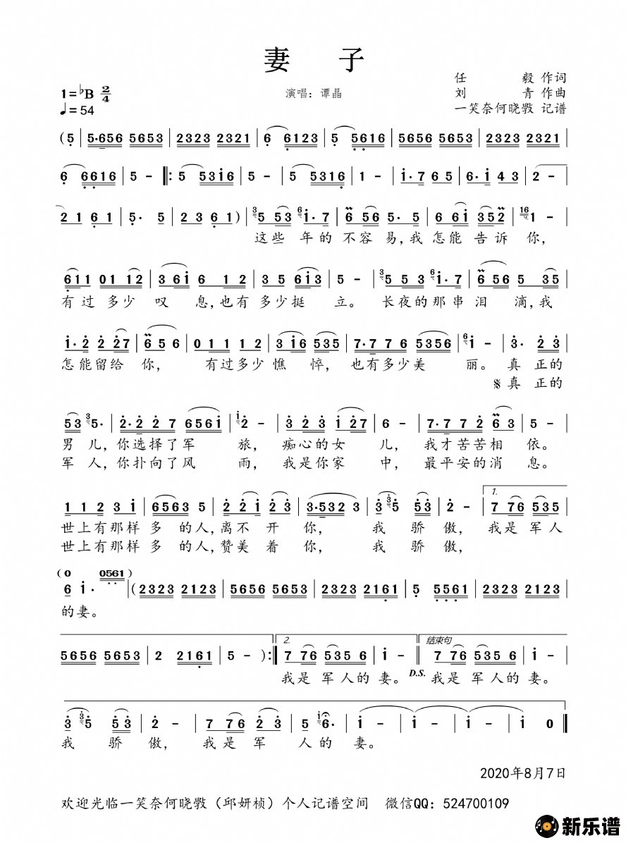 《妻子》简谱 谭晶-一笑奈何晓斅制谱
