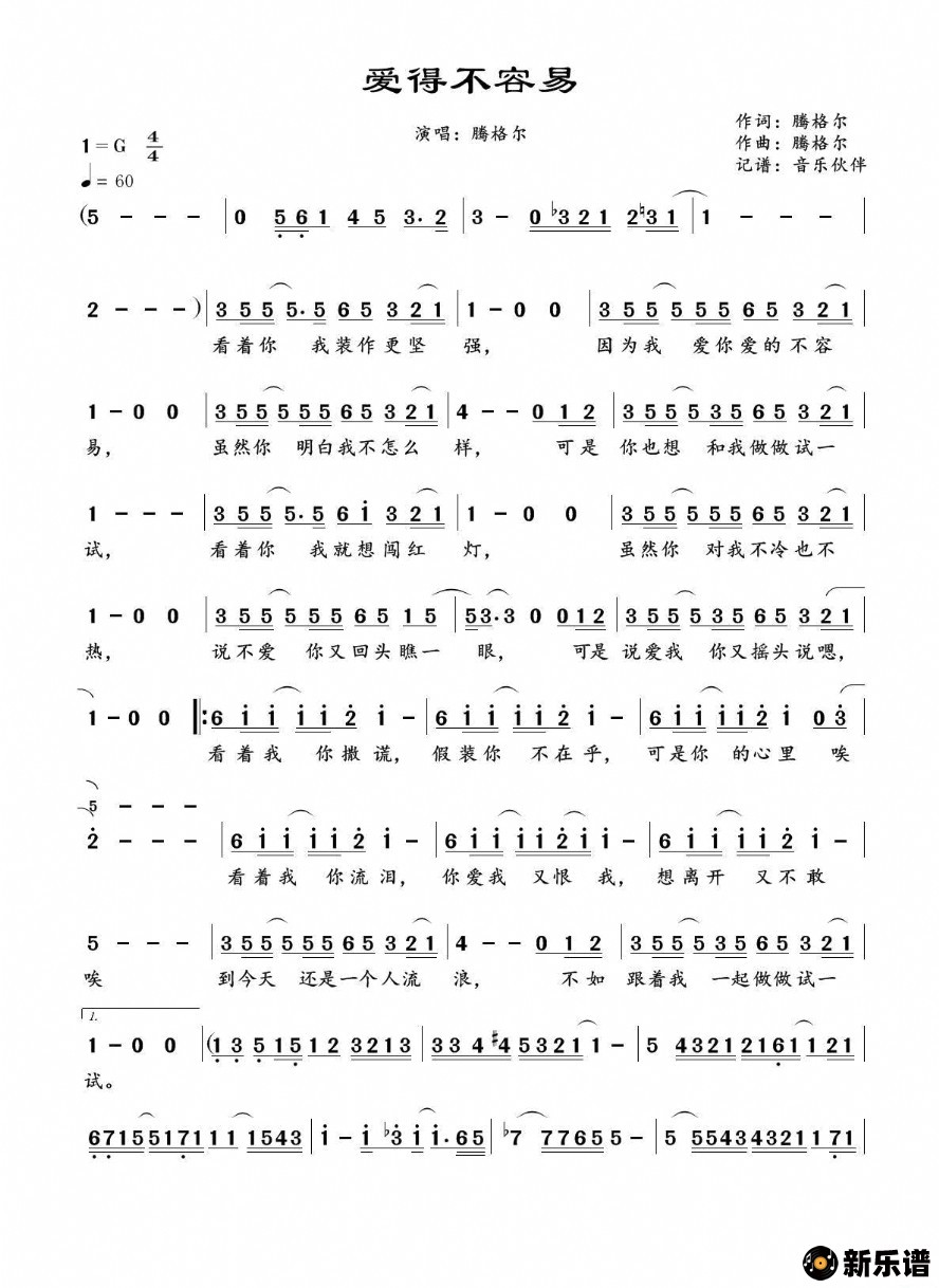 《爱得不容易》简谱 腾格尔-音乐伙伴制谱