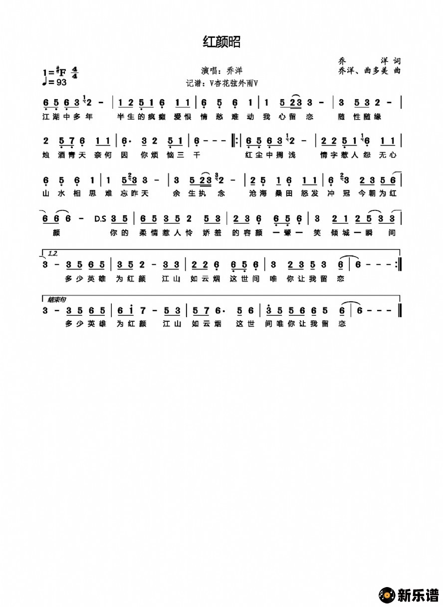 乔洋演唱的红颜昭歌词,红颜昭简谱.