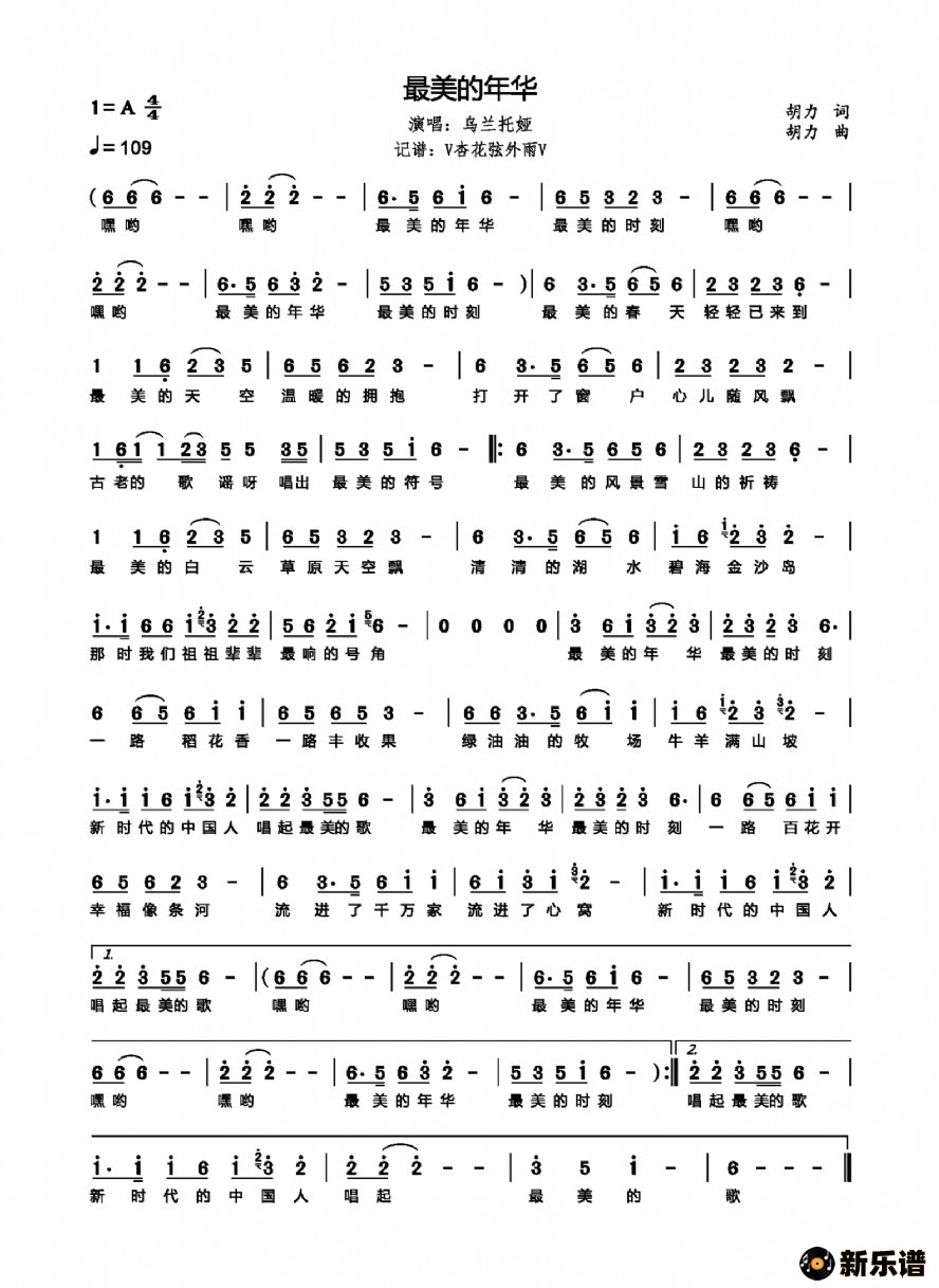 乌兰托娅演唱的最美的年华歌词,最美的年华简谱.