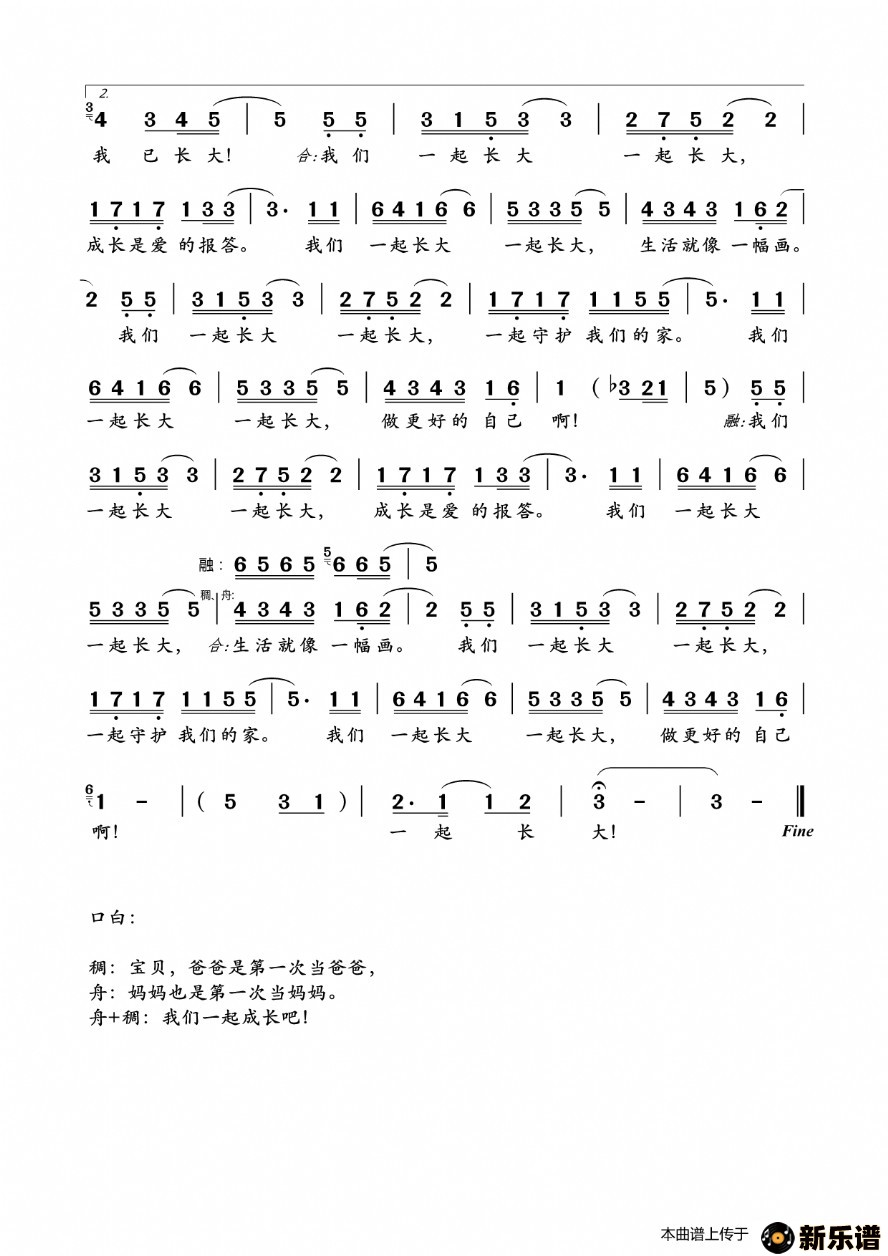 《一起长大》简谱 李昕融、樊桐舟、李凯稠-陈洲宏制谱