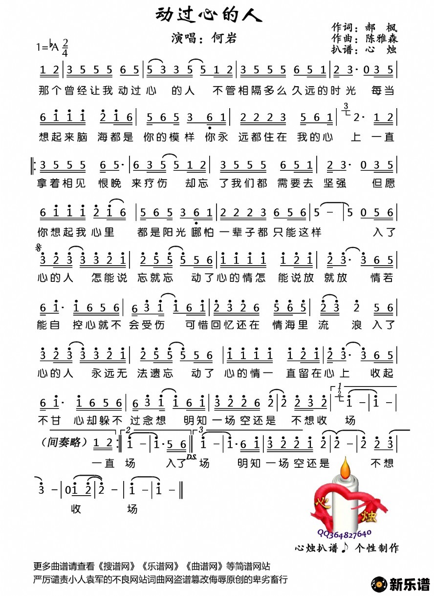 《动过心的人》简谱 何岩-心烛制谱