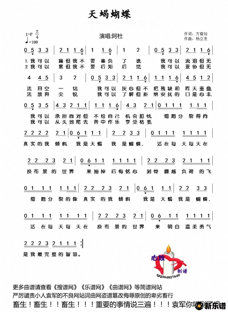 > 天蝎蝴蝶简谱